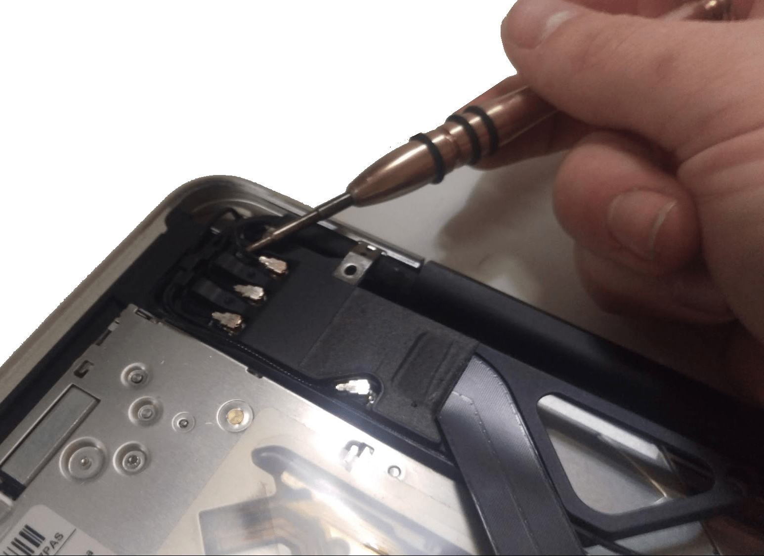 Finally, the speaker can be removed. Simply remove the remaining phillips screws and lift it off the motherboard.