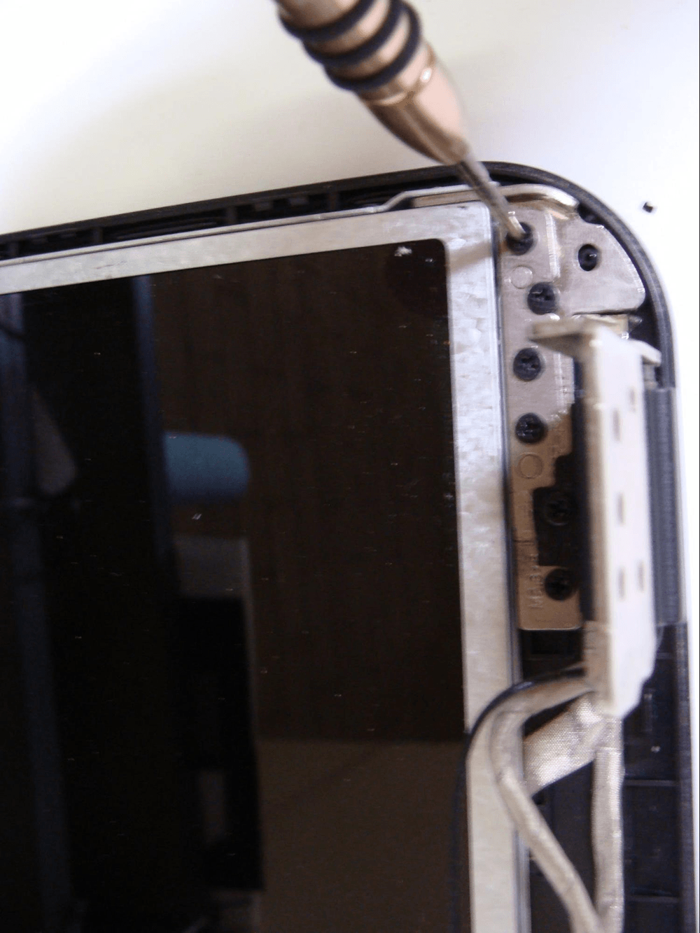 You should now see ten screws around the frame of the LCD. Remove them, then the LCD should be easily separable from the LCD back panel.