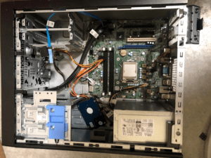 Unscrew the back of your PC case to open it. Then make sure the case is laying flat on its side on your table, while the open side is facing up.